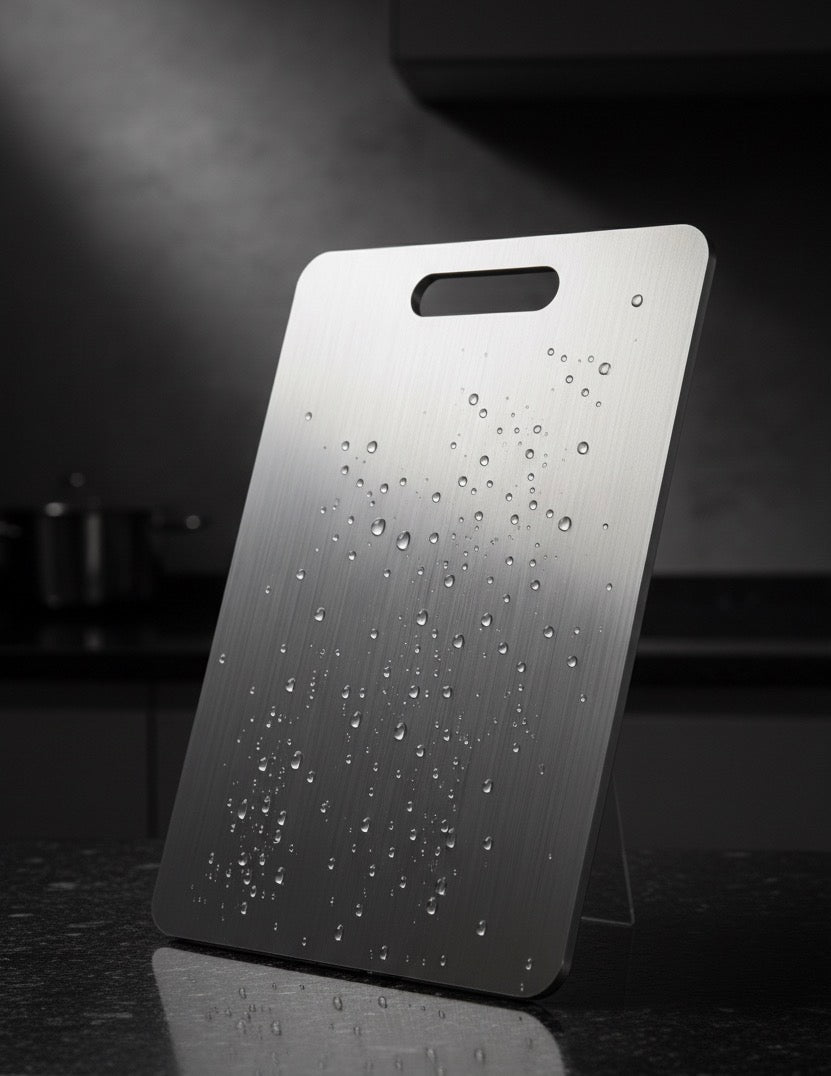 La planche à découper est belle et très grande comme je le souhaitais. Je l'ai lavé donc il y a des traces d'eau. Il y a des petites rayures si je coupe avec le couteau sur la planche à découper mais ce n'est pas grave. C'est mieux qu'une planche à découper en bois ou en plastique. Globalement satisfait